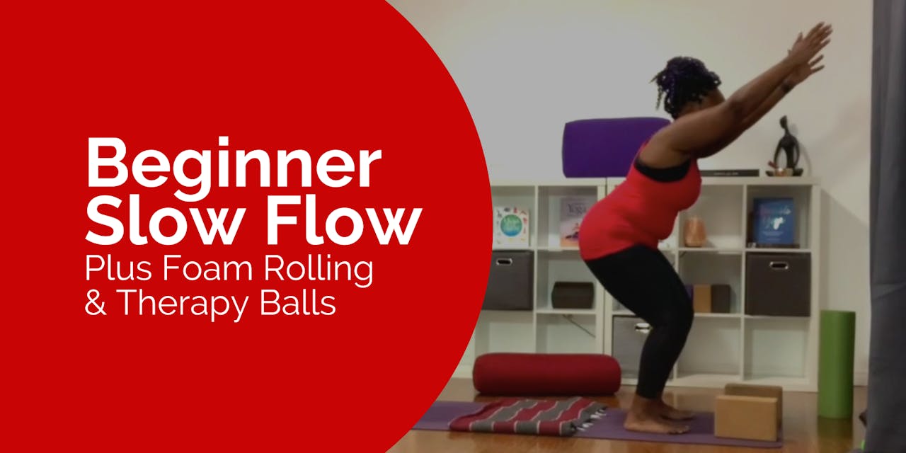 Beginner Slow Flow With Foam Rolling Therapy Balls Beginner Yoga Classes Yoga For Everyone